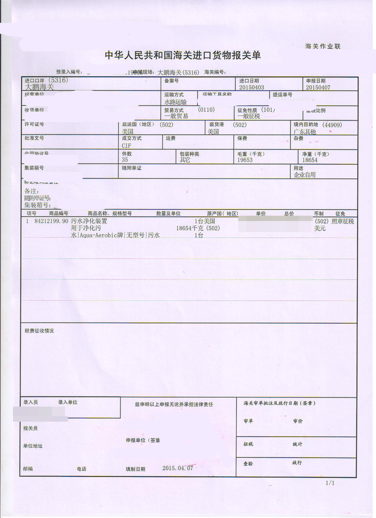 【文章標題】:污水凈化裝置進口報關案例 http://www.sw20000.com.cn/lm5/108.html 轉(zhuǎn)載請注明出處