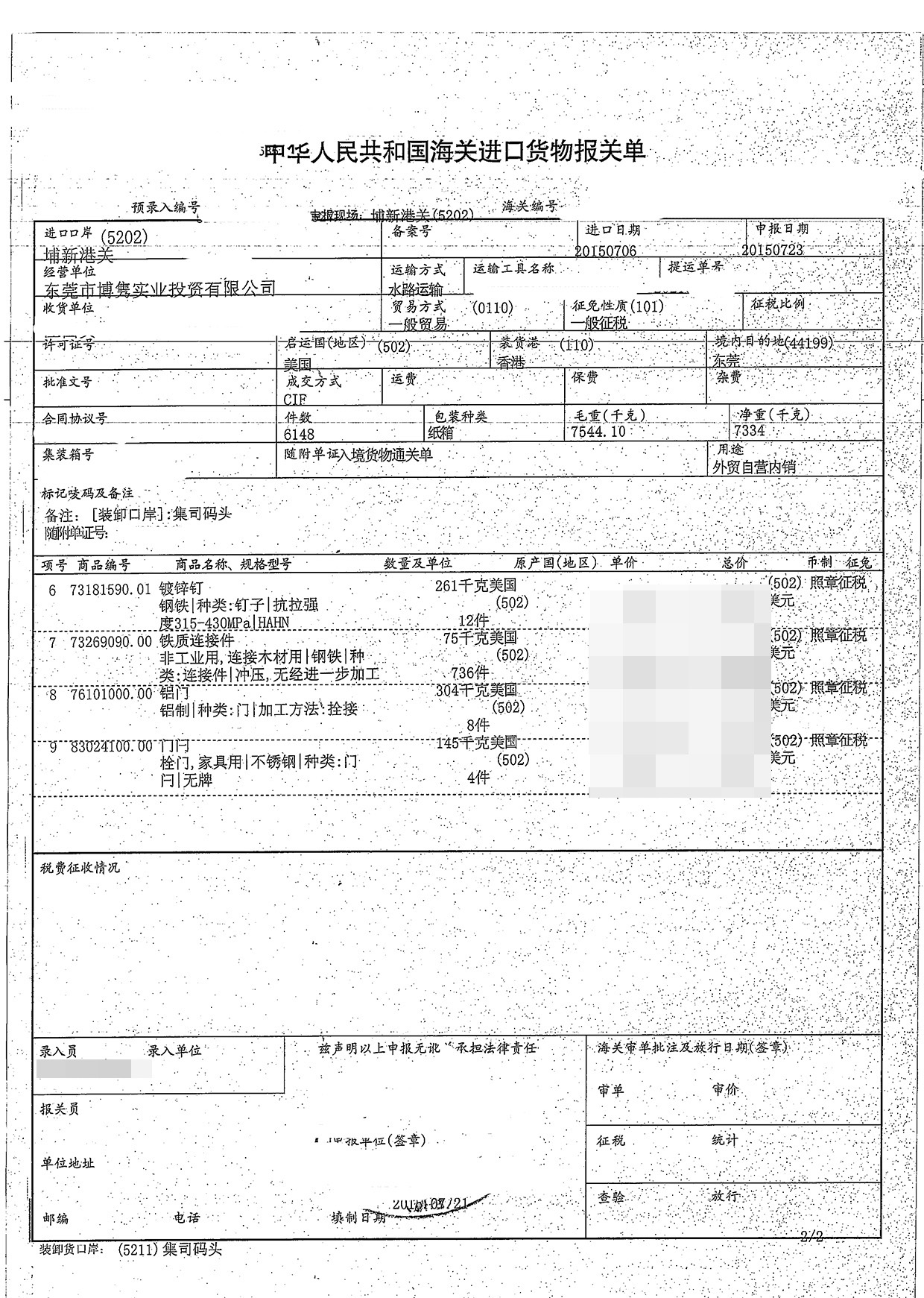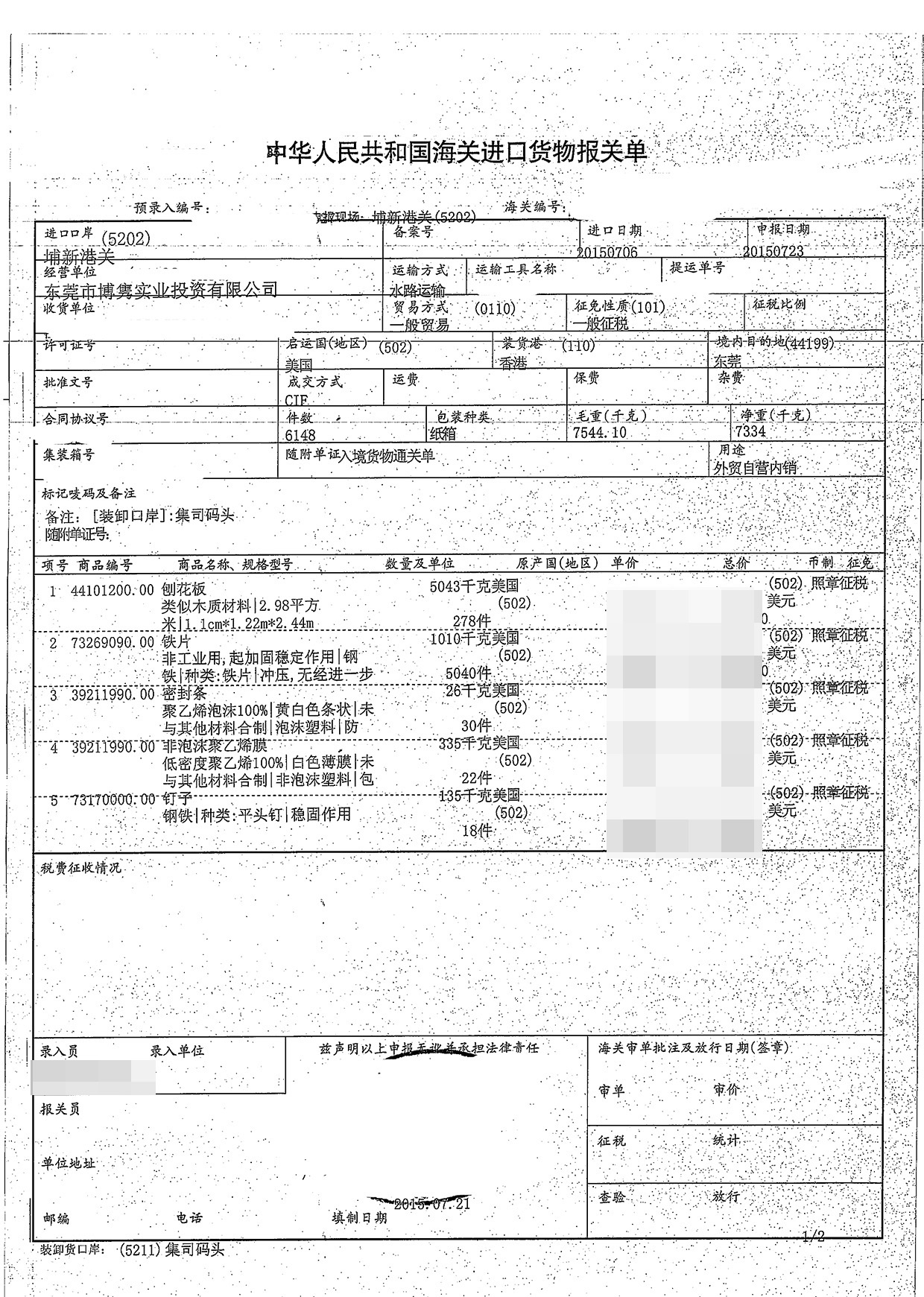 進(jìn)口日期:20150417