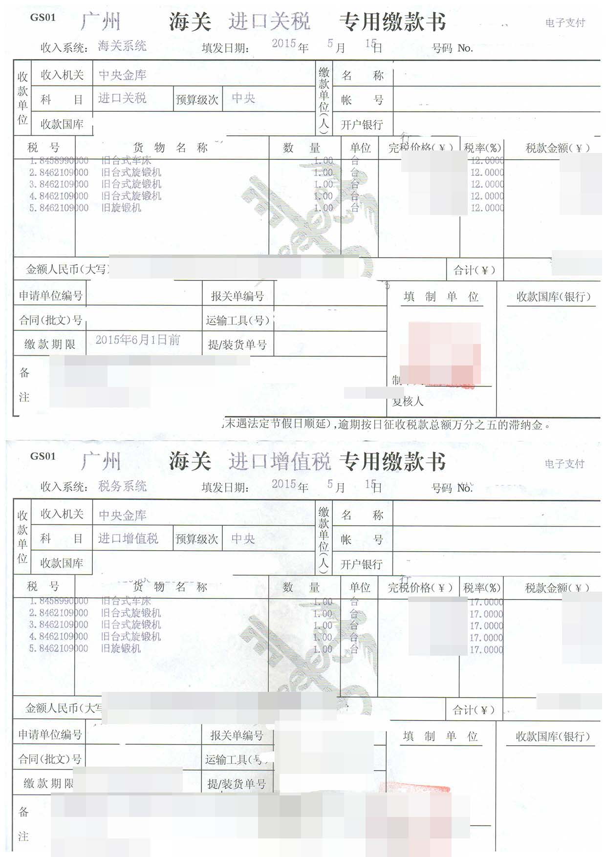 一、舊旋鍛機進口報關(guān)手續(xù)資料