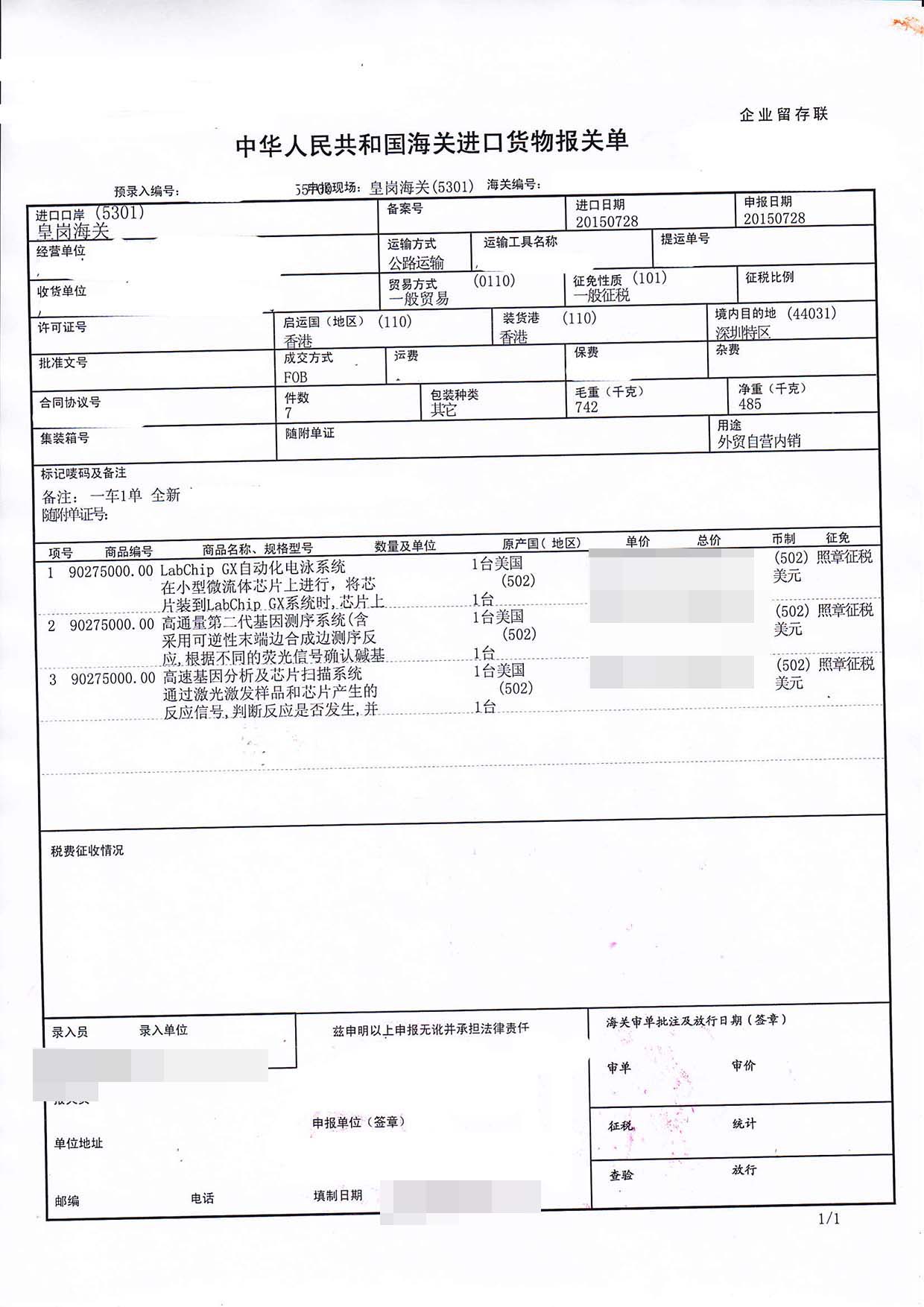 基因檢測儀準確率:疾病家庭的遺傳史就是疾病易感基因的遺傳所造成的,所以基因檢測能夠檢測出這些遺傳的易感基因型,檢測準確率達到99.9999%,我司擁有豐富的基因檢測儀進口報關手續流程及案例,現在為大家詳細介紹一下關于基因檢測儀進口報關那些事兒!