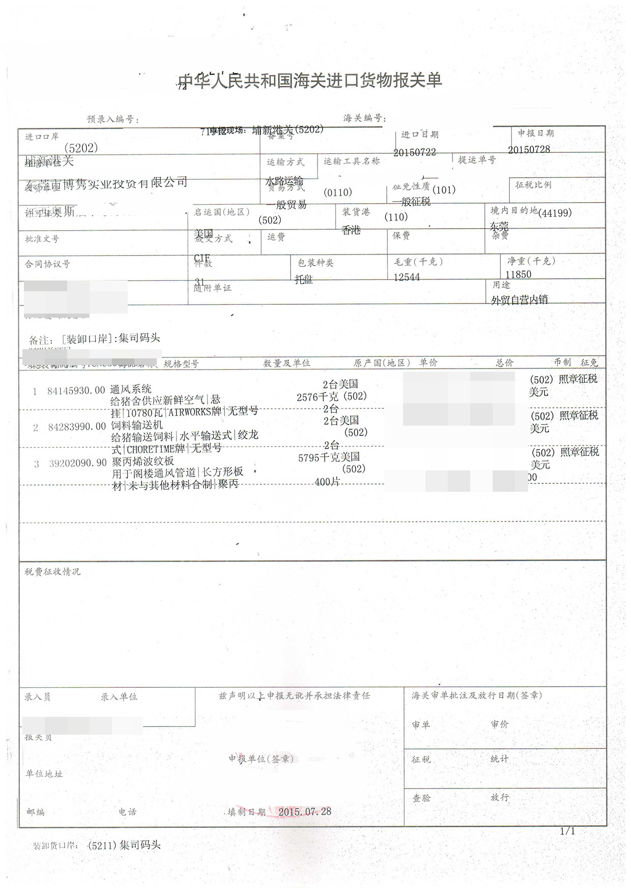 三、通風系統進口報關案例展示