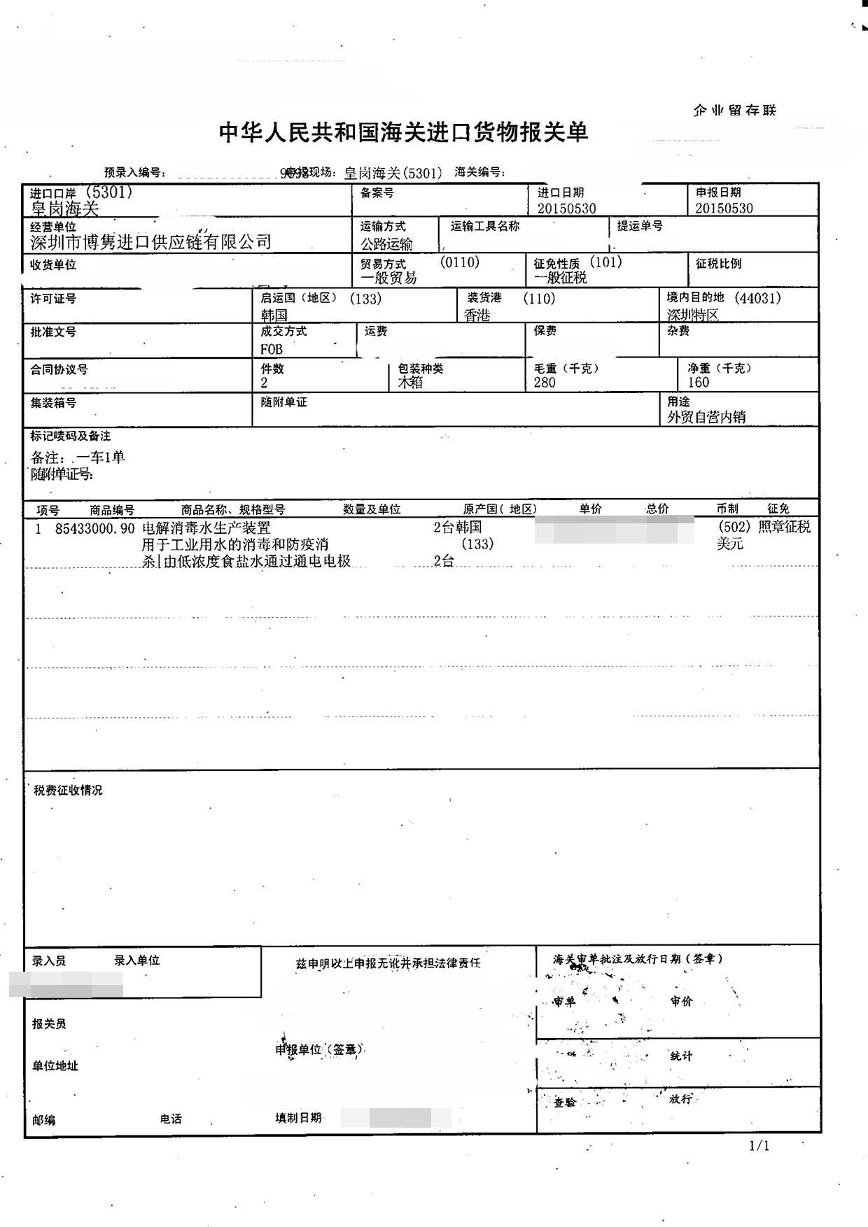 - 電解消毒水生產裝置進口報關手續及案例【干貨】