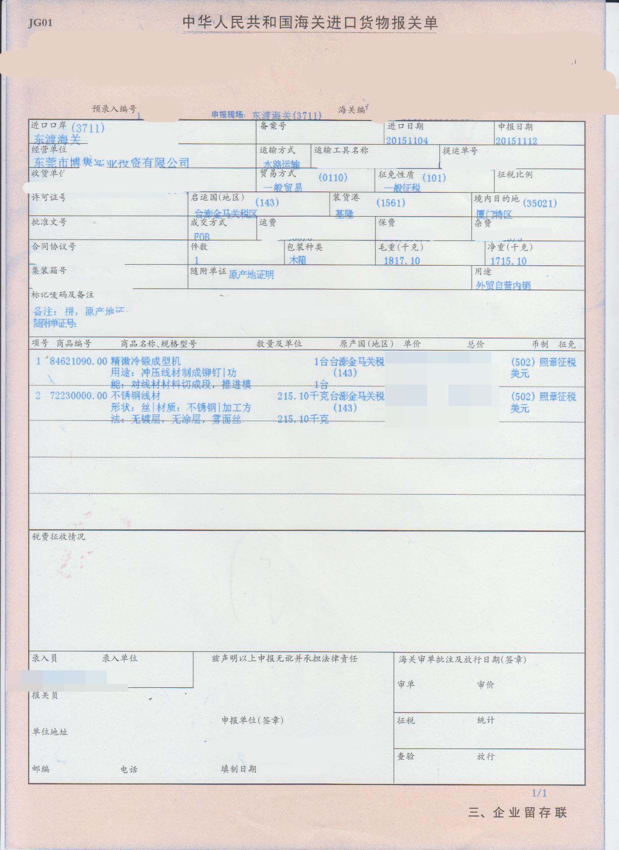 【文章標題】:精微冷鍛成型機進口報關手續及案例【建議收藏】 http://www.sw20000.com.cn/lm9/72.html 轉載請注明出處
