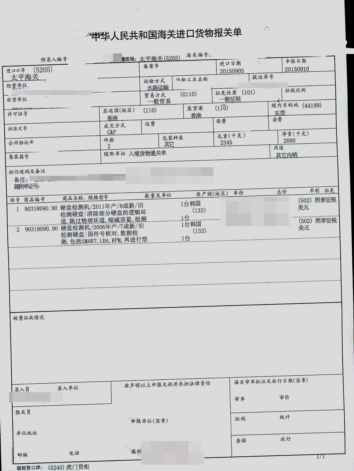 舊硬盤檢測機進口報關手續及案例【建議收藏】
