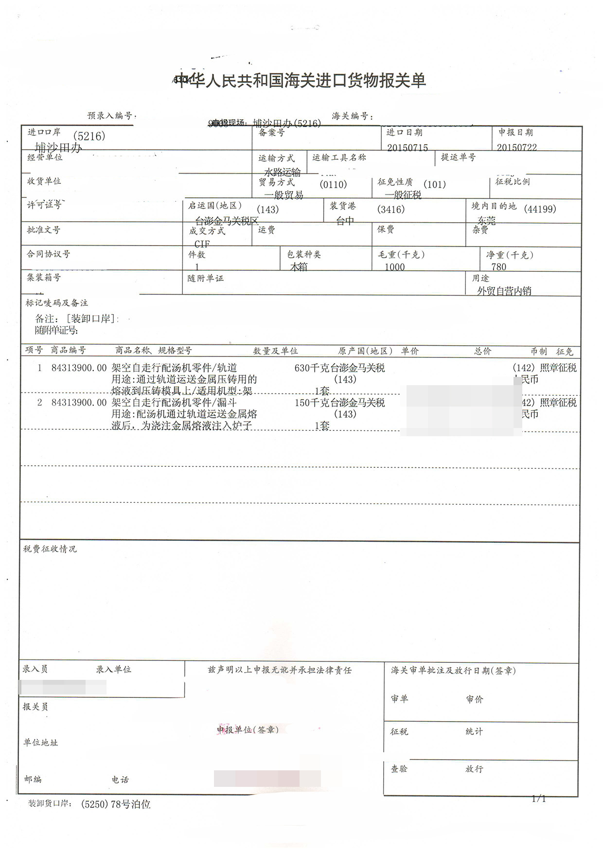 壓鑄給湯機的功能是通過機械連桿原理來實現從熔爐取合金湯液按理想的軌跡送至壓鑄機壓射室的動作的機械設備。有些壓鑄五連桿給湯機有滴料功能,能消除鋁液表面的氧化物,有效提高合格率。我司擁有豐富的配湯機配件進口報關手續流程及案例,現在為大家詳細介紹一下關于配湯機配件進口報關那些事兒!
